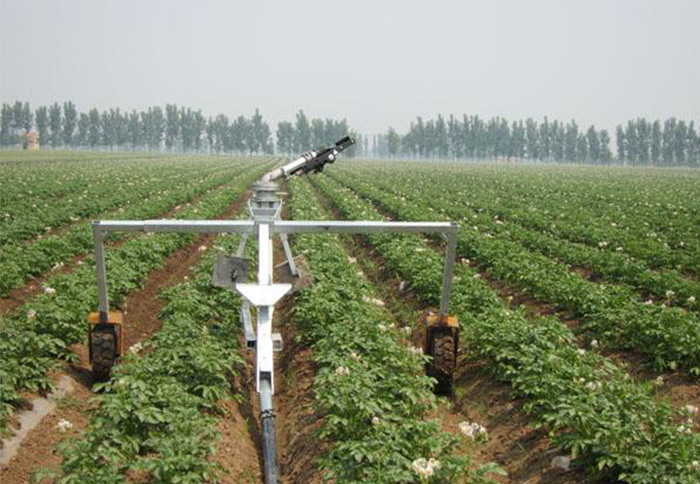 噴頭車是一個(gè)具有兩個(gè)行走輪并安裝噴頭的機(jī)構(gòu),通過PE管牽引此機(jī)構(gòu)進(jìn)行噴灑作業(yè)。每次灌溉終了噴頭車能自動(dòng)的被舉升到運(yùn)輸位置,并且傳動(dòng)系統(tǒng)經(jīng)連桿的作用而自動(dòng)關(guān)閉。當(dāng)噴頭車被自動(dòng)舉起及驅(qū)動(dòng)關(guān)閉時(shí),噴頭車就被運(yùn)輸保護(hù)架所罩住,如果機(jī)器設(shè)有關(guān)閉閥時(shí),供水也會(huì)同時(shí)關(guān)閉。所有的都關(guān)閉以后,機(jī)器就可移動(dòng)至下一個(gè)工作地點(diǎn),進(jìn)行作業(yè)。